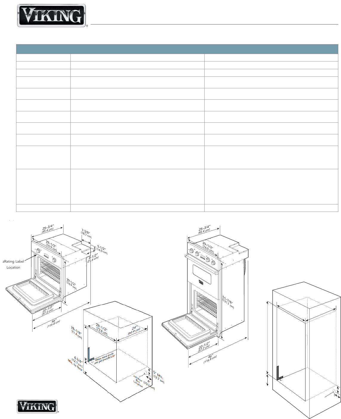 Note: A minimum of 2” (5.1 cm) spacing above and below the oven to any adjacent appliances