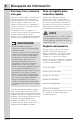 Información importante de seguridad Información eléctrica • • • • • • • La cava de vinos debe conectarse en su propio tomacorriente dedicado que suministre 115 VCA a 60 Hz y 15 A. El cable de alimentación eléctrica de la unidad está equipado con un enchufe que dispone de tres clavijas con conexión a tierra para su protección contra los choques eléctricos. El enchufe debe conectarse directamente en un tomacorriente para tres clavijas conectado a tierra de manera correcta.