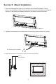 Section 5: Mount Installation 1. Open the package and take out the product with foam still attached. Gently place it on a desktop or table. Remove the extra parts and the foam covering the monitor. If the monitor is already attached to the stand, remove the stand. Button 2. Tighten four screws (not included) onto the mounting holes on back of monitor. 4x Screws (not included) 3. Install the monitor on the wall, mount, or fixture as desired.