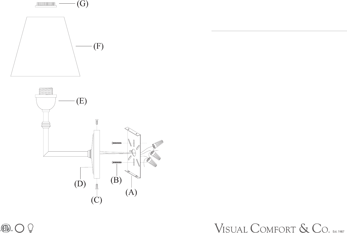 7. Remove socket ring (G) from threaded socket (E), place lamp shade onto the