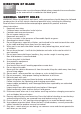 DIRECTION OF BLADE Please make sure the diamond blade always towards the same direction as the arrow which is molded on the blade guard. GENERAL SAFETY RULES WARNING! When using electric tools basic safety precautions should always be followed to reduce the risk of fire, electric shock and personal injury including the following. Read all these instructions before attempting to operate this product and save these instructions. 1. Keep work area clear - Cluttered areas and benches invite injuries. 2.