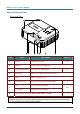 D DLLPP PPrroojjeeccttoorr –– U Usseerr’’ss M Maannuuaall Top view—On-screen Display (OSD) Buttons and LEDs ITEM 1. 2. LABEL OVERHEAT LED POWER LED DESCRIPTION SEE PAGE: On System over temperature Off Normal State Green Unit is powered on and working correctly Off Unit is powered off Flashing Operational error code (see LED Error Messages on page 42) Orange Lamp ready—you can safely turn on or off the projector Flashing Lamp not ready—do not press the power button 3. READY LED 4.