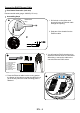 English Wall mount 1. Attach the supplied alignment sticker to the wall. 2. Using the circle marks on the sticker, drill at least 2 pilot holes symmetrically on each side into the wall. Then hammer the four supplied plastic anchors into the holes. 3. Through three or four holes on the mounting plate, insert the supplied screws into the corresponding holes and secure the mounting plate with a screwdriver. 4. Feed the cables through the triangular cutout A or side opening B.