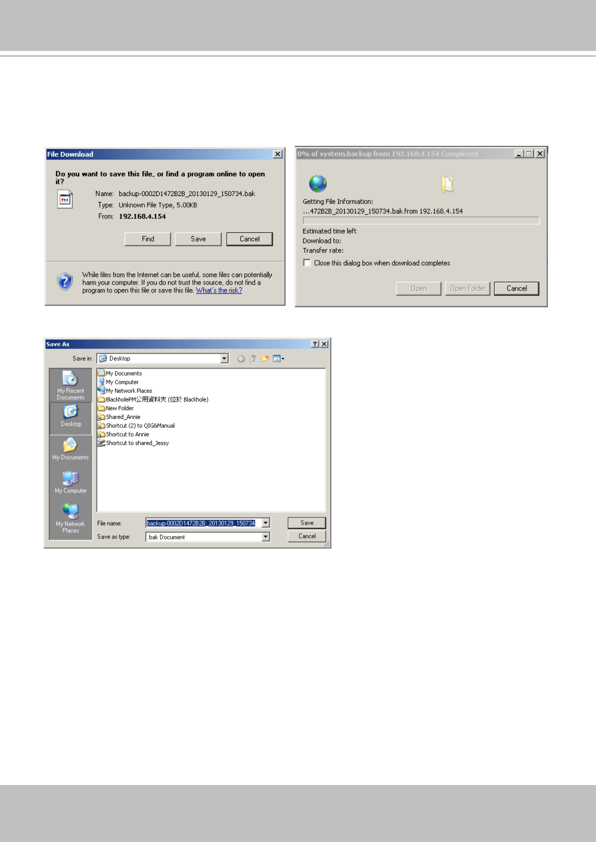 Backup, a message window will prompt. Click Save to preserve your system congurations.