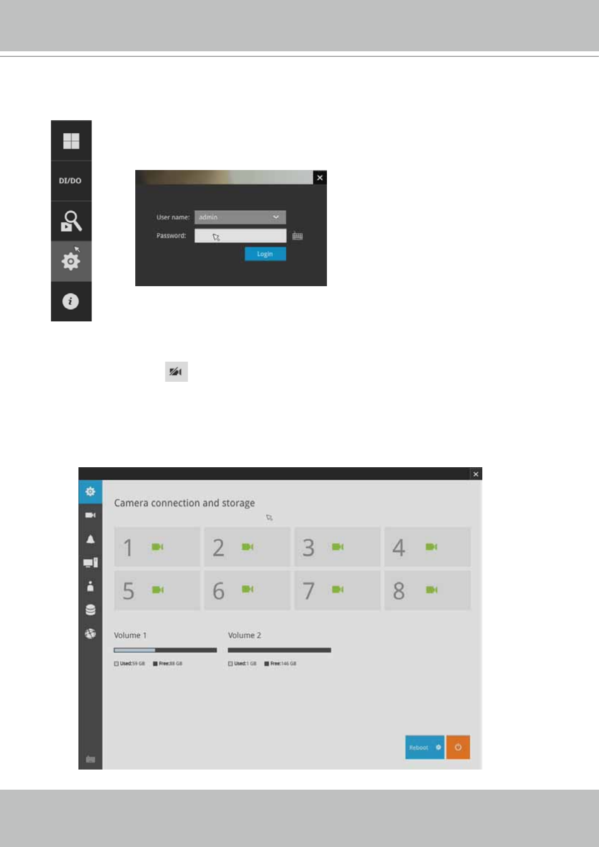 storage statuses. An empty position will be left in blank, and a disconnected camera will