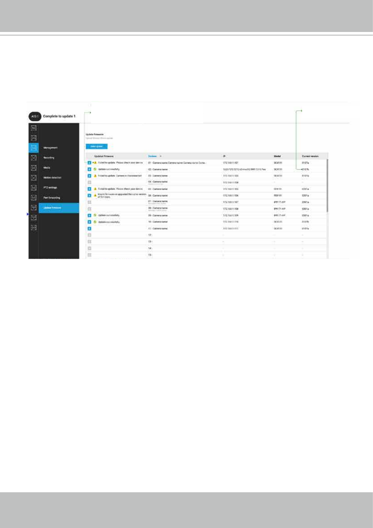 The Batch upload function allows you to update the rmware of multiple cameras. The rmware