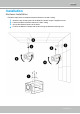 VIVOTEK Installation Hardware Installation Follow the steps below to install the Network Camera to the wall / ceiling. 1 2 3 4 : Attach the top mounting stand to the Network Camera using the supplied screws. : Fasten the Network Camera stand to the wall / ceiling. : Secure the Network Camera to the stand. : Position the Network Camera with the lens facing the desired monitoring area.