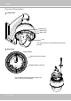 VIVOTEK 1-3. Connect with the Mount Bracket Combine the components of the top section. 1. Press the seal ring into the groove on the interface section. Use the black machine screws (M4x8) to attach the interface section to the dome cap. Note that you should orient and align the spring contacts with the dehumidifier unit on the dome cap. 2. Secure the dome cap to the mount bracket. 3. Use the included hex wrench to secure the connection.