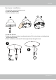 VIVOTEK 7. Hammer in the screw anchors. Route cables through the hole at the bottom of the camera. 8. Secure the camera using the included screws. 9. Connect Ethernet and DC wires. Arrange the cables neatly and use a cable tie to secure DC wires to bracket. 9 7 8 10. Adjust the camera lens shooting angle.