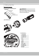 VIVOTEK 4. Cabling Assembly Waterproof Connector Components of the Waterproof Connector Screw Nut (A) Seal (B) Seals (C) Housing (D) IMPORTANT: If you should need to open the front cover, make sure you tighten it up later so that the camera can be waterproof.