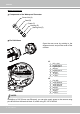 VIVOTEK Waterproof Connector Components of the Waterproof Connector Screw Nut (A) Seal (B) Seals (C) Housing (D) Sealing Nut (E) Pin Definitions Open the rear cover by rotating to the alignment mark, and pull the cover off the canister. Fix n Alig J3 8 J6 1 8 1 J3 1 1 2 3 4 5 6 7 8 DO+ (12V) Digital Output Digital Input 1 Ground Digital Input 2 Ground TV Out + TV Out - J6 1 2 3 4 5 6 7 8 Ext.