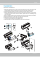 VIVOTEK Cabling Assembly: RJ45 Cable Connector Components of the Waterproof Connector Sealing Nut (A) RJ45 Cable Dimension (unit: mm) Seal (B) Screw Nut (C) Housing (D) Gasket (E) Assembling Steps 1 Prepare an Ethernet cable and strip part of the sheath. 2 Insert the housing into the screw nut. (C) 3 (D) Insert the seal into the housing. (B) Recommended cable gauge: 24AWG (0.51 mm) 4 Insert the stripped Ethernet cable through the sealing nut and the housing.