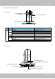 VIVOTEK Physical Description Front panel Lens and Manual Focus Ring Antenna (PT8133W) Status LED LED Definitions Item LED status Description 1 Steady Red Power on and system boot Red LED off Power off Blink Green every 1 sec. + Steady Red Network connected (heartbeat) Green LED off + Steady Red Network failed Blink Red every 0.15 sec. + Blink Green every 1 sec. Upgrading firmware 2 3 4 Blink Red every 0.15 sec. + Blink Green every 0.15 sec.