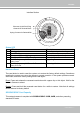VIVOTEK Interface Section General I/O Terminal Block Spring Contacts for Dehumidifier Ethernet Ethernet 10/100 RJ45 Plug AC24V AC24V Reserved MIC IN Line OUT Audio GND RS485RS485+ DI GND DI4 DI3 DI2 DI1 DO2 DO1 DO+(12V) Status LED Item LED status Description 1 Steady red Power on and system booting Red LED off Power off 2 Steady red & Green blinking every 1 sec. Network normal (heartbeat) Steady red & Green LED off Network failed 3 Red blinking every 0.15 sec.