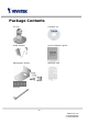 Package Contents PT7137 Software CD Power adapter Quick installation guide Mounting Kit & Pads Warranty card Antenna -6www.vivotek.