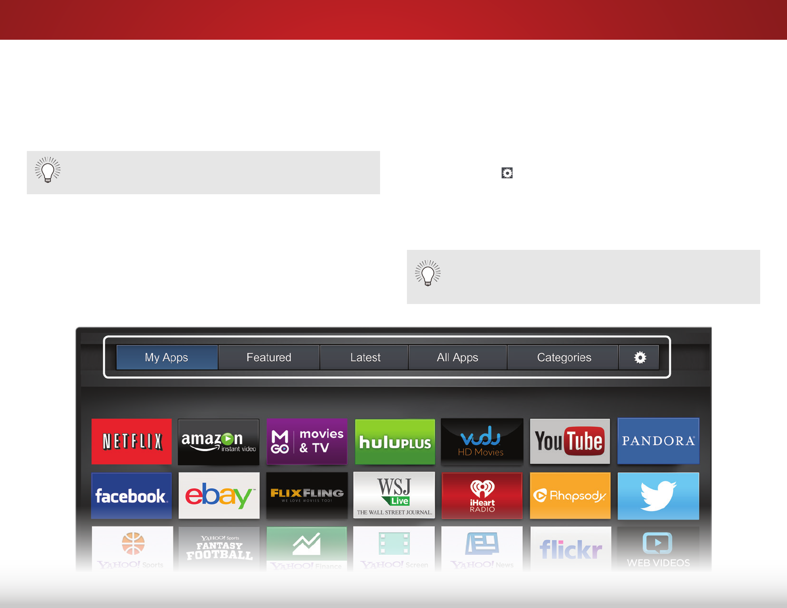 are already installed on your TV. The Apps on the first page are