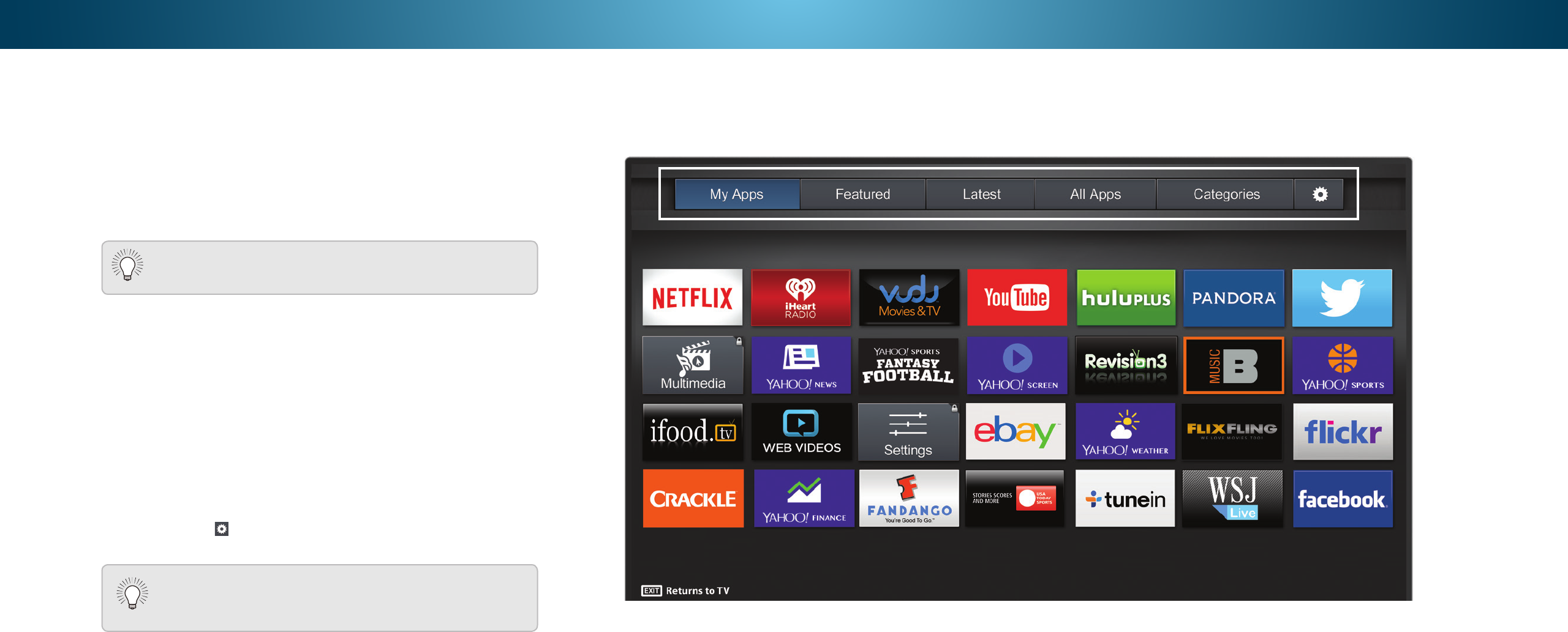 The following tabs are located at the top of your Fullscreen V.I.A.