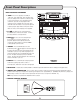 Front Panel Descriptions 1. POWER - Press to turn the system ON, press again and release to turn the system OFF. 13 2. CASSETTE CONTROLS. RECORD - Press to RECORD. Refer to “Recording Cassettes”. PLAY – Press to PLAY tape. Refer to “Playing Cassettes”. REW/REV – Press to REWIND tape. FF/CUE – Press to rapidly ADVANCE tape. STOP/EJECT – Press to STOP cassette. (Cancels any depressed cassette button except PAUSE). Press again to OPEN cassette door.