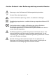 Auf dem Gerät oder in der Bedienungsanleitung vermerkte Hinweise: Warnung vor einer Gefahrenstelle. Bedienungsanleitung beachten. Hinweis. Bitte unbedingt beachten. Vorsicht! Gefährliche Spannung, Gefahr des elektrischen Schlages. Durchgängige doppelte oder verstärkte Isolierung entsprechend Klasse II IEC 61140. Konformitätszeichen, bestätigt die Einhaltung der gültigen Richtlinien.
