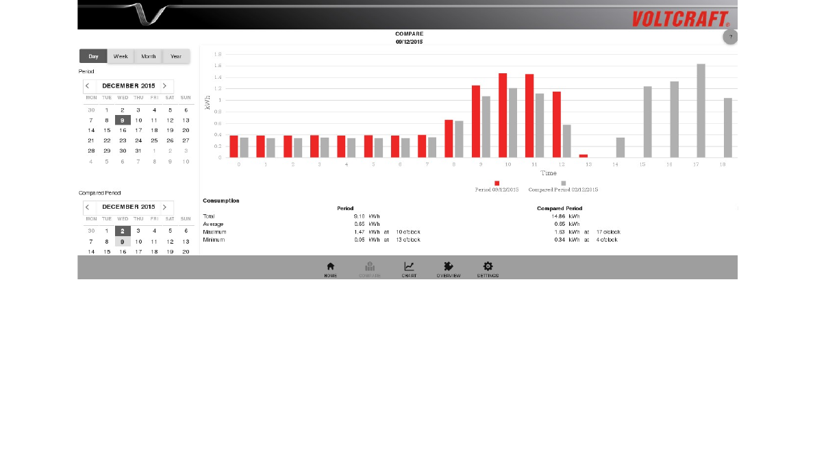 As in the other menus, you can choose between the time periods day, week, month and year in the