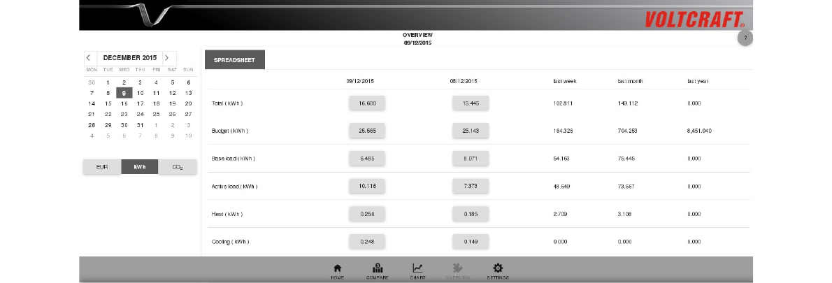 spreadsheet the consumption on the selected and the previous day is shown, respectively. The