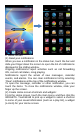 Introduce the basic phone function 1. Switch MainMenu style (1) In default Home screen, slide your fingertip left and right along the screen to reveal the more home screen. (2) On Home screen, click icon on the bottom of the screen (Main menu icon) to enter the main menu screen, slide your fingertip left and right along the screen to reveal the more applications.