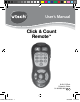 INTRODUCTION The Click & Count RemoteTM by VTech® looks just like mom and dad’s remote control! It has songs and melodies for sing-along fun and pretend channels to keep your child entertained. Press the buttons for fun channel changing role-play while learning numbers, colors and shapes. 10 NUMBER BUTTONS Off/Volume Control Switch Introduction 3 LED LIGHTS Music button PRETEND CHANNEL UP/DOWN BUTTON PRETEND RECORD/PLAY BACK BUTTON 150300 Manual.