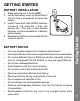 GETTING STARTED 1. Make sure the unit is turned OFF. 2. Locate the battery cover on the bottom of the unit. Use a screwdriver to loosen the screw. 3. Install 2 new AAA (AM-4/LR03) batteries following the diagram inside the battery box. (The use of new alkaline batteries is recommended for maximum performance). 4. Replace the battery cover and tighten the screw to secure. BATTERY NOTICE • • • • • • • • • • • • Use new alkaline batteries for maximum performance.