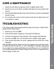CARE & MAINTENANCE 1. Keep the unit clean by wiping it with a slightly damp cloth. 2. Keep the unit out of direct sunlight and away from any direct heat source. 3. Remove the batteries when the unit will not be in use for an extended period of time. TROUBLESHOOTING If for some reason the program/activity stops working or malfunctions, please follow these steps: 1. Please turn the unit OFF. 2. Interrupt the power supply by removing the batteries. 3.