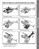 8. Flip the propeller down so that it rests within the tail. 9. Unfold the arms. 10. Move the arms down. How to Switch 7. Turn the rear wing at the end of the tail back. 11. Move the head down and the 12. Dinosaur shape. rocket launcher up. Note: To change the dino back into a helicopter, reverse the order of the steps above.