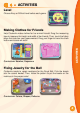 ACTIVITIES Level Choose Easy or Difficult level before each game. Making Clothes for Friends ACTIVITIES Help Cinderella make clothes for her animal friends! Drag the measuring tape to measure the height and width of her friends. Then, touch the fabric piece that matches your measurement. Drag your finger to trace the chalk outline and create an outfit! Curriculum: Number, Sequence Fixing Jewelry for the Ball Cinderella needs to repair necklaces for the Royal Ball.