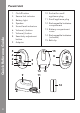 Parent Unit 1. On/off button 2. Secure link indicator 10. Socket for small appliance plug 3. Battery light 11. Small appliance plug 4. Speaker 12. Rechargeable batteries compartment 5. Sound level indicators 13. Battery compartment cover 6. Volume(+) button Quick Reference Guide 7. Volume(-) button 14. Rechargeable batteries (included) 8. Sensitivity adjustment button 15. Belt clip 9.