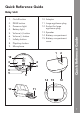 Quick Reference Guide Baby Unit 1. On/off button 10. Adaptor 2. PAGE button 11. Large appliance plug 3. Power-on light 12. Socket for large appliance plug 4. Battery light 13. Speaker 5. Volume (+) button 15. Battery compartment cover 7. Lullaby button 8. Play/stop button 9. Microphone 1 2 13 3 7 8 9 4 6 ON ! 5 14 10 15 Quick Reference Guide 14. Battery compartment 6.