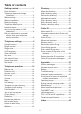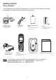 Table of contents Getting started..............................1 Directory......................................19 Parts checklist.....................................1 Telephone base and charger installation........................................2 Wall mounting......................................3 Battery installation...............................4 Battery charging..................................5 Telephone base layout........................5 Handset layout....................................