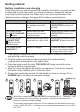 Getting started Battery installation and charging Install the battery as shown below. After installing the battery, you may be able to make and receive short calls. For best performance, charge the handset for at least 16 hours before use. When not in use, place the handset in the telephone base or charger. See page 38 for battery operating times. Battery indicators Battery status Action The screen is blank. Battery has no charge and the handset cannot be used.