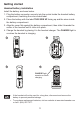 Getting started Telephone base layout MENU/SELECT IN USE light Press to show the menu (page 12). On when the phone is in use, or when the answering system is answering an incoming call. On when a handset is being registered (page 64). Flashes when there is an incoming call. While in the menu, press to select an item, or save an entry or setting. Press to review the directory when the base is not in use (page 35). Flashes when handsets are being deregistered (page 65).