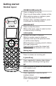 Getting started Handset layout CID/ /VOLUME (caller ID) Press to display the call log. Press to scroll down while in menus or lists. While entering names or numbers, press to move the cursor to the left. During a call or message playback, press to decrease the listening volume. MENU/SELECT Press to show the menu. While in the menu, press to select an item or save an entry or setting. OFF/CANCEL During a call, press to hang up.