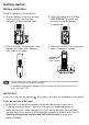 Getting started Battery installation Install the battery as shown below. 1. Plug the battery connector securely into the socket, matching the orientation of the engraved label. 2. Place the battery with the label THIS SIDE UP facing up and the wires inside the battery compartment. 3. Slide the battery compartment cover towards the center of the handset until it clicks into place. 4. Place the handset in the telephone base or charger to charge. CHARGE light remains on when charging.
