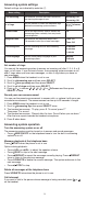 Answering system settings Default settings are indicated by asterisks (*). Menu setting Description Options Call screening Set whether you hear the callers while they are leaving messages to you. Screening: On* Screening: Off # of rings Set the number of times the telephone rings before the answering system answers. 3*; 2; Toll saver; 6; 5; 4; Remote code Set a two-digit security code to access the answering system remotely from any touchtone telephone.