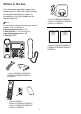 Table of contents Redial list................................................... 18 Review a redial list entry..............................18 Dial a redial list entry....................................18 Delete a redial list entry................................18 What’s in the box......................................... 1 Overview...................................................... 2 Telephone base overview..............................2 Handset overview...........................................