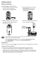 Getting started Handset layout CHARGE light • On when the handset is charging in the telephone base or charger (page 3). 1 • Press repeatedly to add or remove 1 in front of the caller ID log entry before dialing or saving it to the directory ���������������� while reviewing a caller ID log entry���(page 45). • Press and hold to set or dial your voicemail number (page 19 or page 27). TONE • Press to switch to tone dialing temporarily when using pulse service while on a call (page 25).