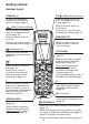 Table of contents Getting started..........................1 Parts checklist.............................1 Telephone base and charger installation................................2 Battery installation and charging...................................3 Installation options......................4 Tabletop to wall mount installation . .............................4 Wall mount to tabletop installation................................5 Handset layout............................6 Telephone base layout...............
