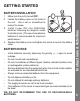 GETTING STARTED 1. Make sure the unit is turned OFF. 2. Locate the battery cover on the back of the unit. Use a coin or screwdriver to loosen the screw. 3. Install 3 new “AA” size (UM3/LR6) batteries following the diagram inside the battery box. (The use of new alkaline batteries is recommended for maximum performance.) 4. Replace the battery cover and tighten the screw to secure the battery cover. BATTERY NOTICE • Install batteries correctly observing the polarity (+, -) signs to avoid leakage.