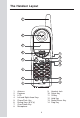 The Base Unit Layout 3 1 2 4 5 1. Message Light 2. Locate Handset Key 3. Charging/In use Light 4. Telephone Line Jack 5.