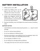 BATTERY INSTALLATION 1. Make sure the unit is Off. 2. Locate the battery cover on the back of the unit. Use a coin or screwdriver to loosen the screw. 3. Install 2 'AA' (UM-3/LR6) batteries, follow the diagram inside the battery box. (The use of new, alkaline batteries is recommended for maximum performance.) 4. Replace the battery cover and tighten the screw to secure the battery cover. BATTERY NOTICE • Install batteries correctly observing the polarity ( +, - ) signs to avoid leakage.