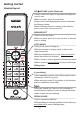 Getting started Handset layout CID/ /VOLUME (caller ID/volume) Press to review the caller ID log when the telephone is not in use. While in a menu, press to scroll down. During a call or message playback, press to decrease the listening volume. When entering numbers or names in the directory, press to move the cursor to the left. MENU/SELECT Press to show the menu. While in a menu, press to choose an item, or save an entry or setting. OFF/CANCEL During a call, press to hang up.