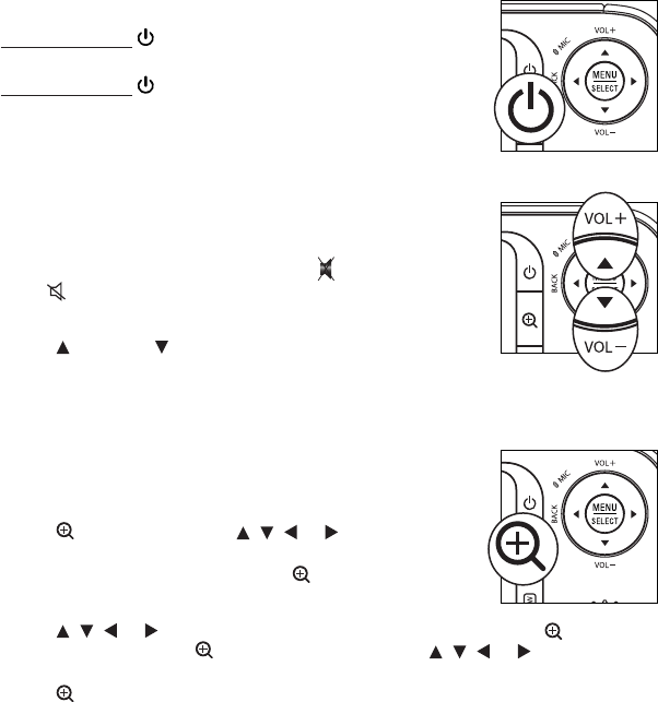 MENU/SELECT. Press again to zoom in. Press , , or to move the