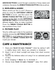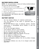 BATTERY INSTALLATION 1. Make sure the unit is turned OFF. 2. Locate the battery cover on the bottom of the unit and open it. 3. Insert 2 “AA” sized batteries as illustrated. 4. Close the battery cover. RECHARGEABLE BATTERIES ARE NOT RECOMMENDED. BATTERY NOTICE • • • • • • • • • • • • Use new alkaline batteries for maximum performance. Use only batteries of the same or equivalent type as recommended.