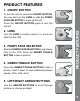 PRODUCT FEATURES 1. ON/OFF BUTTON 2. LENS Turn the LENS to create a zoom in or zoom out effect on the LCD. 3. FUNNY FACE SELECTOR Slide the Funny Face selector to see a funny face on the LCD. Press the Green Toggle Button to take a picture! 4. GREEN TOGGLE BUTTON Press the Green Toggle Button to take a picture. Hold it down to take additional pictures quickly. Click, click, click! PRODUCT FEATURES To turn the unit on, press the ON/OFF BUTTON.