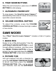 6. Four MODE BUTTONS 7. AUTOMATIC POWER OFF To save power, the Scroll & Learn Camera™ automatically shuts down if it does not receive any input after several minutes. 8. VOLUME CONTROL BUTTON To adjust the volume, press the Volume Control button to choose from high, medium or low volume. GAME MODES Your VTech® Scroll & Learn Camera™ includes a total of 4 game modes: 1.